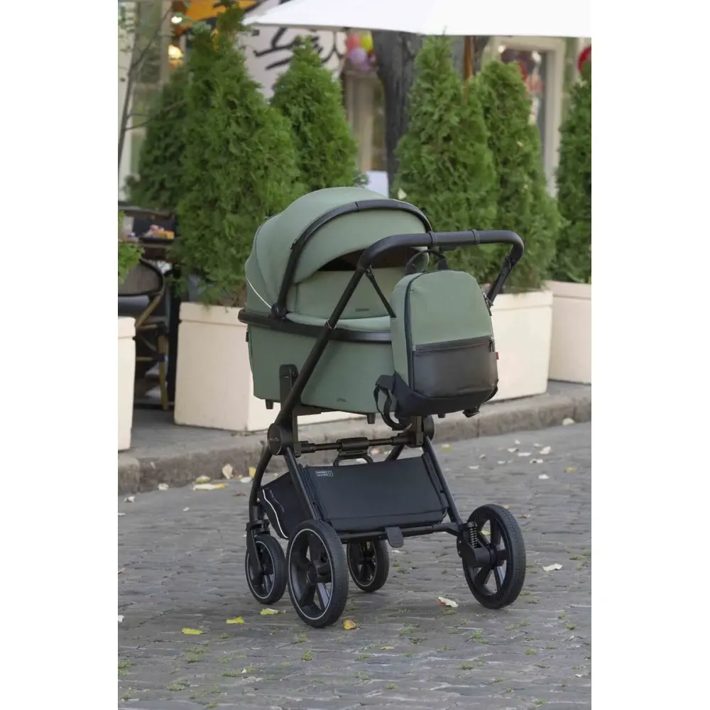 Люлька с матрасиком. Прогулочный блок. Накидка на ножки. Рама с колесами. Рюкзак для мамы. Дождевик. Москитная сетка. Корзина для покупок.