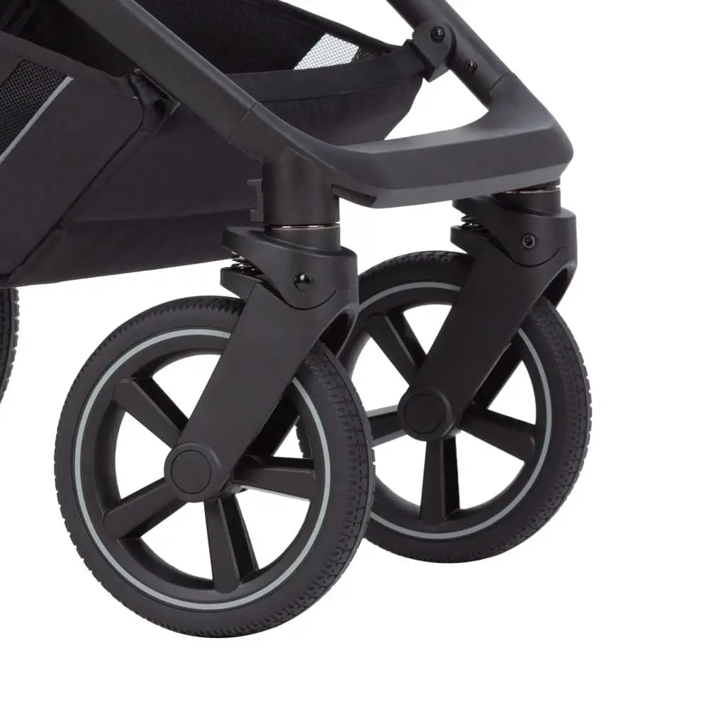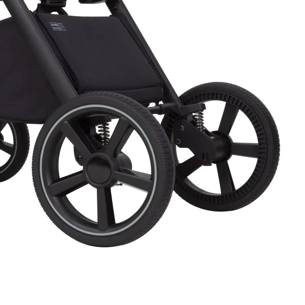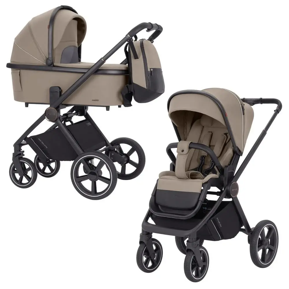• Прочная эко-кожа на родительской ручке и бампере придает коляске изысканный вид и обеспечивает комфорт в использовании.