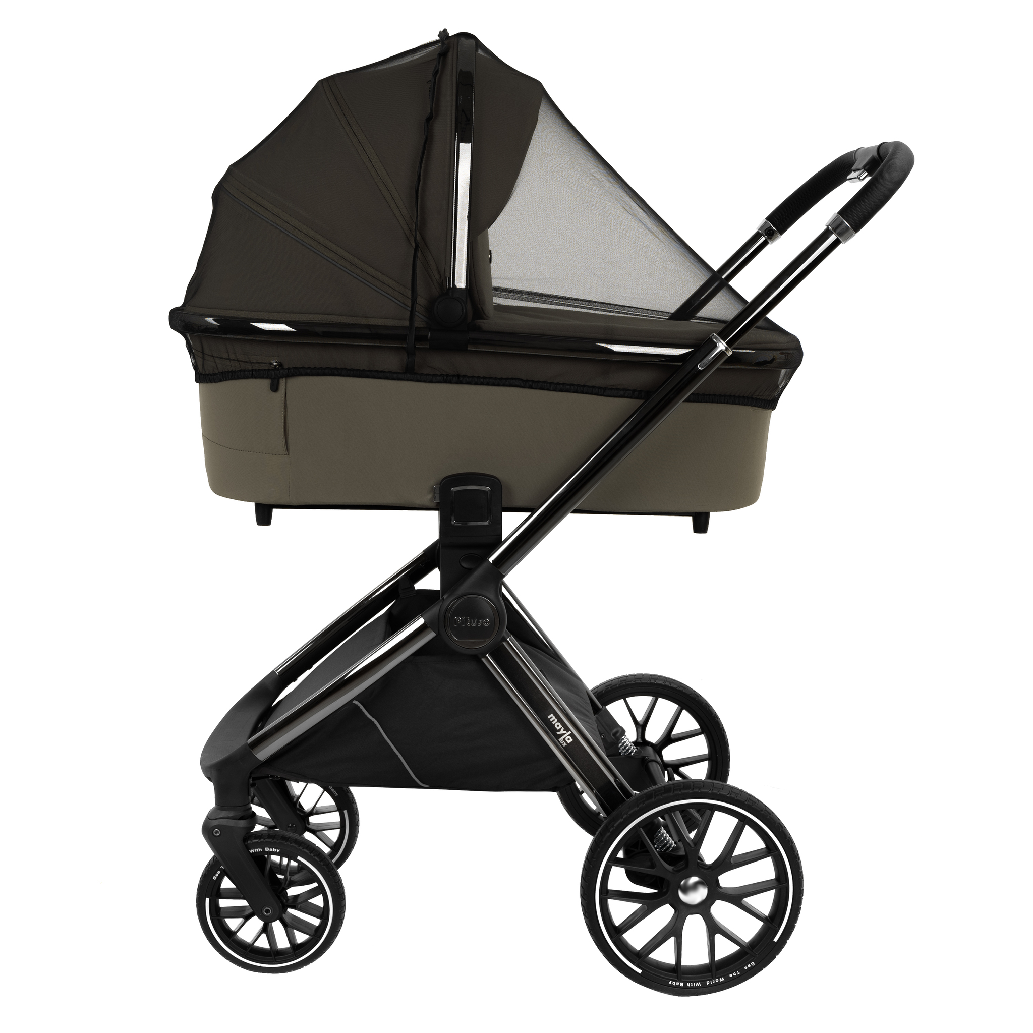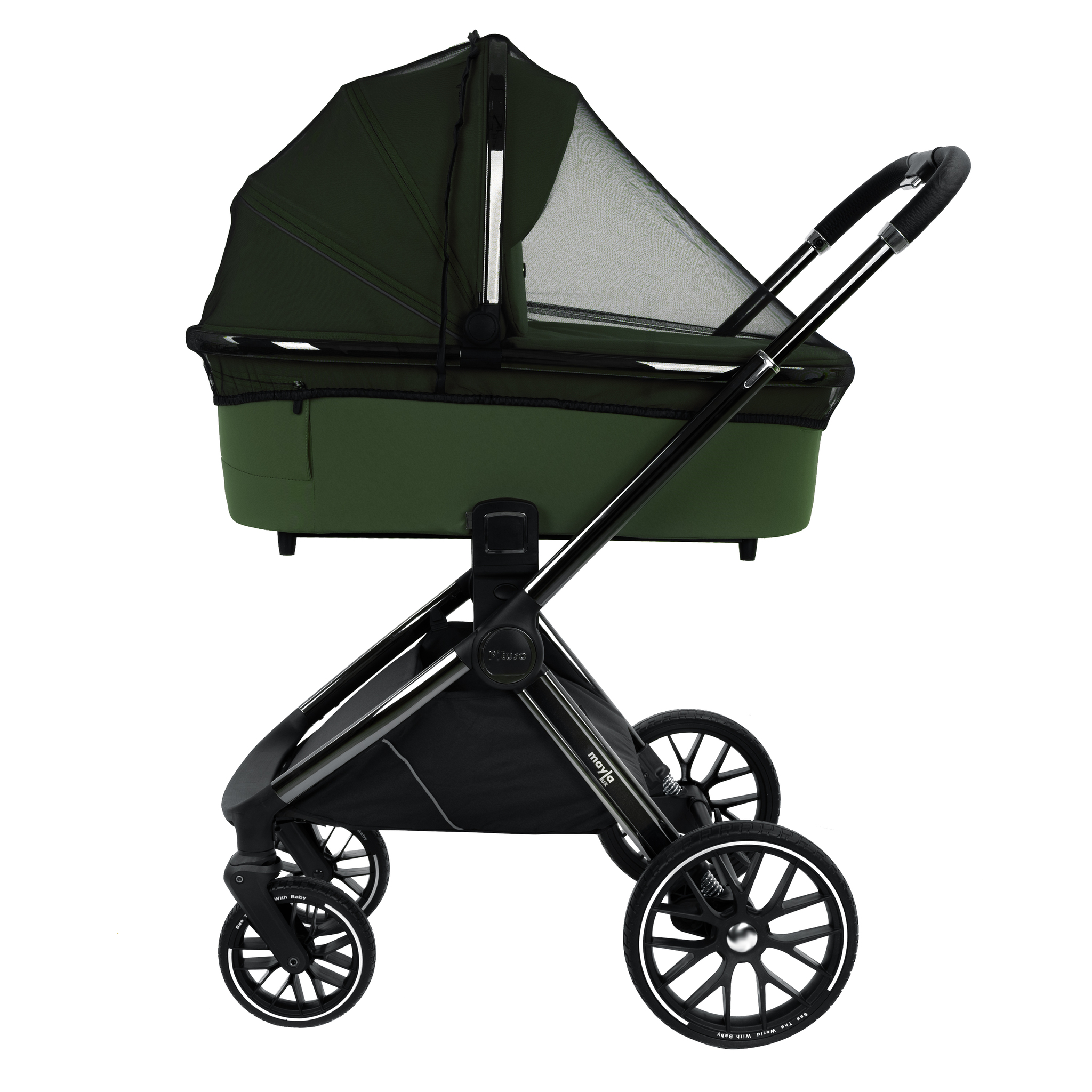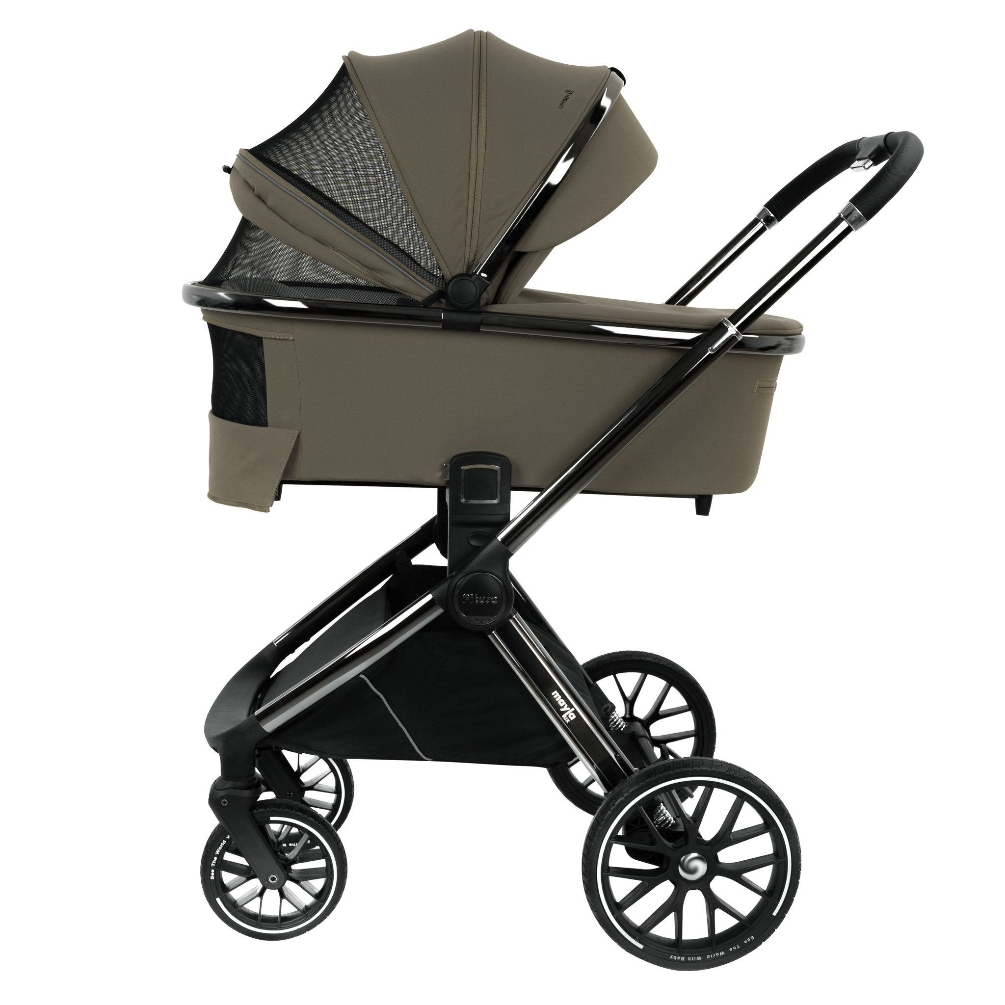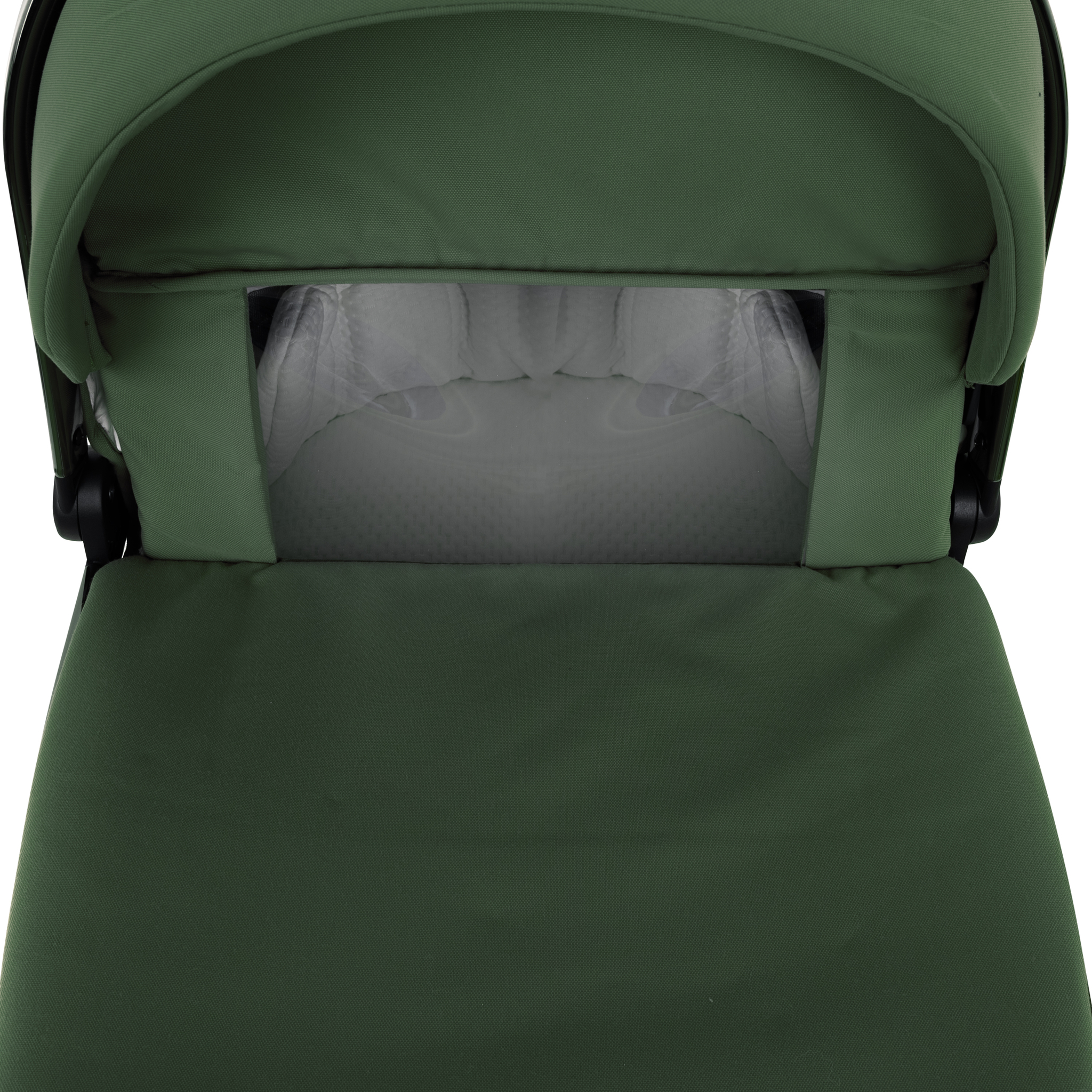 Люлька коляски оснащена системой вентиляции для регулировки температуры в жаркую погоду и многослойным утеплённым корпусом для защиты в холодное время года. Ортопедический матрас и механизм регулировки спинки обеспечивают комфортное положение малыша. Лёгкое снятие с шасси реализовано через систему Memory Button.