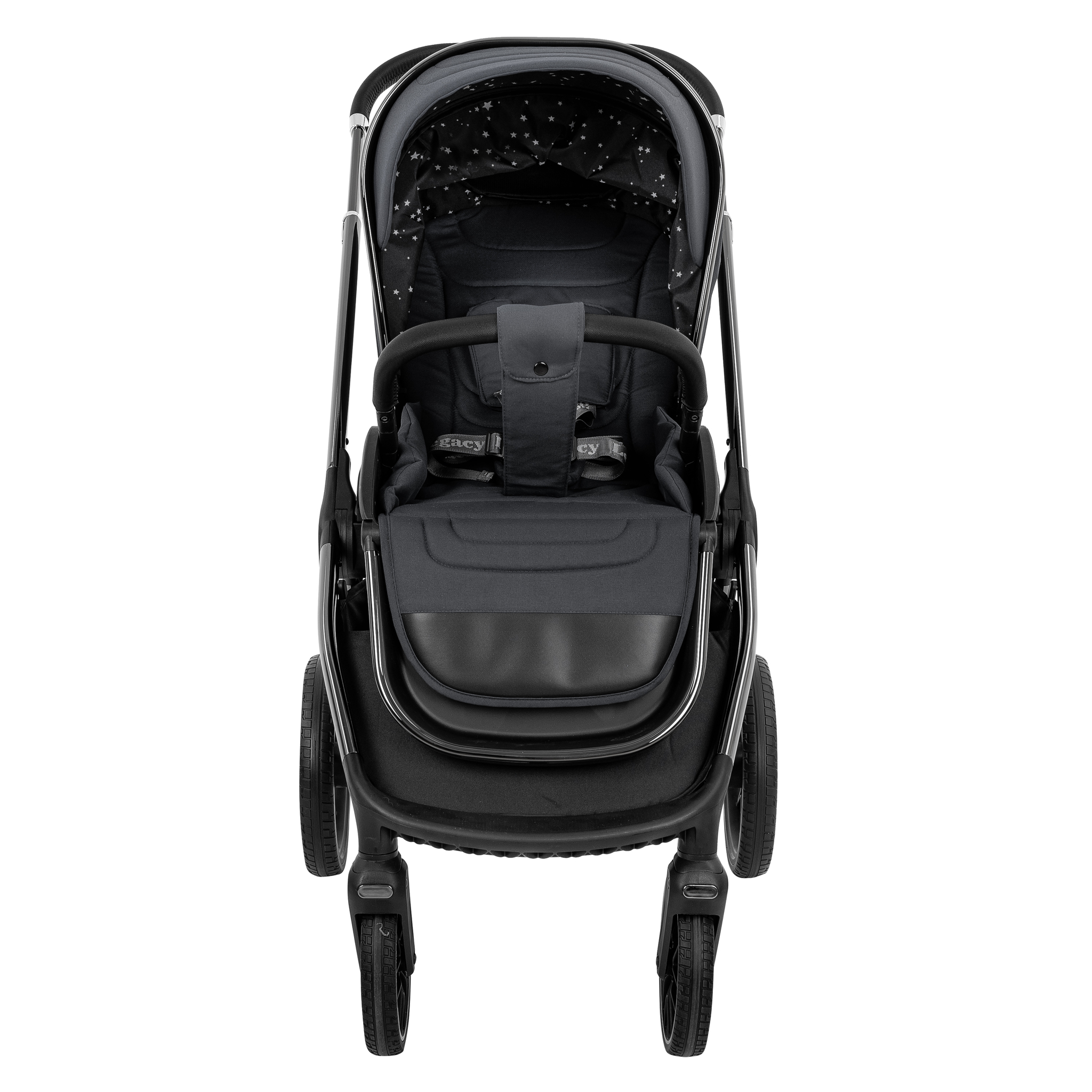 Прогулочный блок устанавливается по ходу и против хода движения. Спинка и подножка независимо регулируются в трёх положениях: «сидя», «полулёжа» и «лёжа». Безопасность обеспечивается пятиточечными ремнями, поворотным бампером и паховым ремнём.