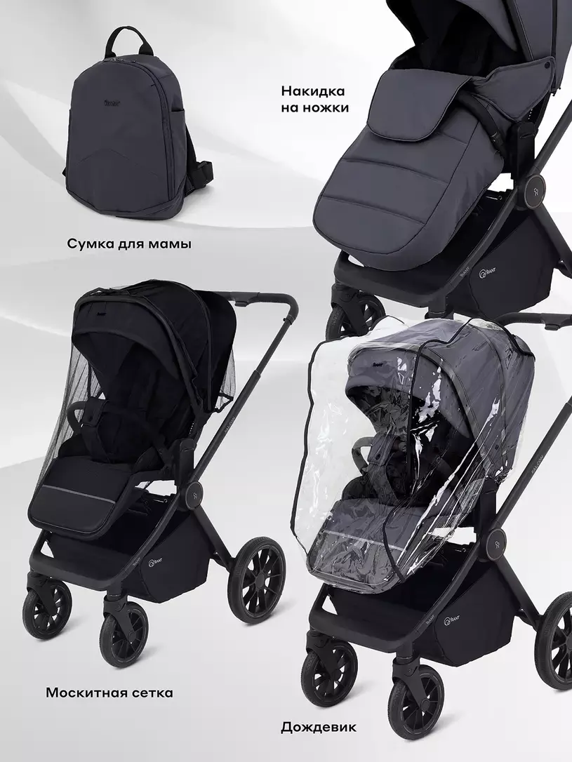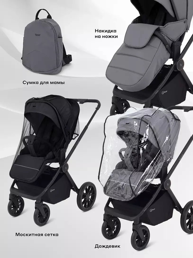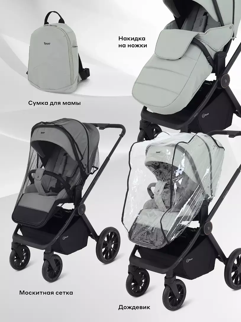 • богатая комплектация: стильный рюкзачок для мамы, дождевик, москитная сетка