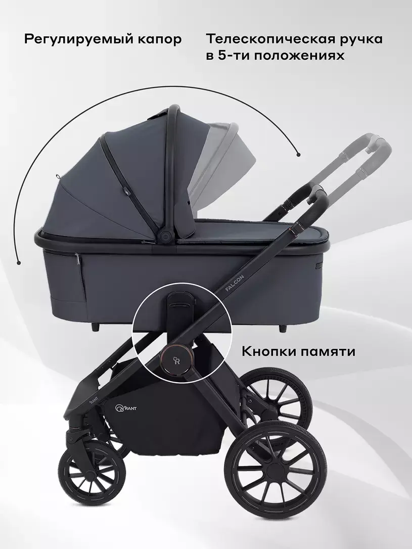Детская коляска RANT FALCON NEO 2 в 1 покорит вас: регулировкой блоков по высоте; быстросъемными блоками с памятью кнопок; регулировкой капюшона в прогулочном блоке по высоте; складной люлькой для хранения и транспортировки; трендовой палитрой цветов вкупе с премиальной тканью