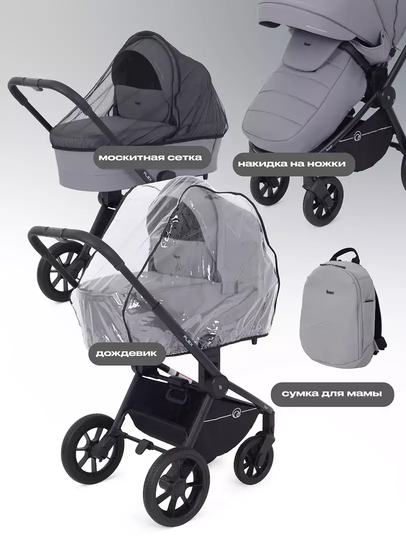 люлька, прогулочный блок, шасси, корзина для покупок, накидка на ножки, сумка для мамы, москитная сетка, дождевик