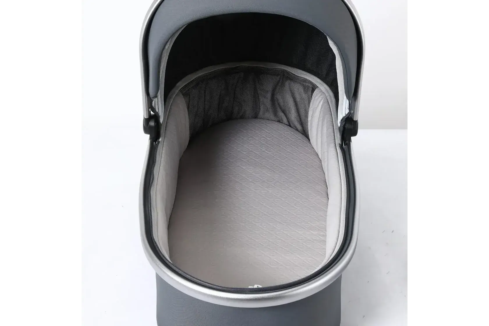 Просторная люлька с жестким дном и распорками гарантирует безопасность и устойчивость даже при установке на пол. Регулируемый подголовник и вентиляционные отверстия обеспечивают здоровый микроклимат и комфортный сон новорожденного. Материалы люльки защищают от влаги и ветра.
