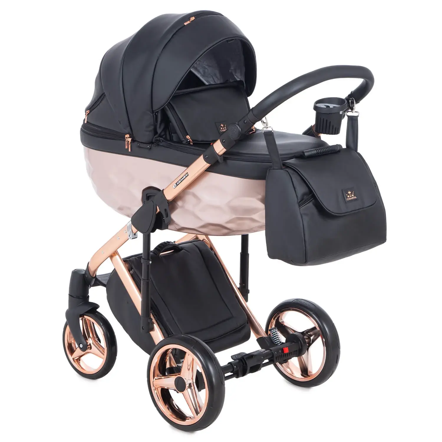 Коляска 3 в 1 Adamex Chantal Star Deluxe – воплощение стиля и комфорта! Эксклюзивный дизайн люльки, премиальные ткани, удобные блокировки амортизаторов и современная система вентиляции капюшона обеспечат малышу идеальный микроклимат. Встроенное смотровое окно в высокой накидке позволяет следить за малышом без лишних хлопот. Удобство и стиль в каждой детали!