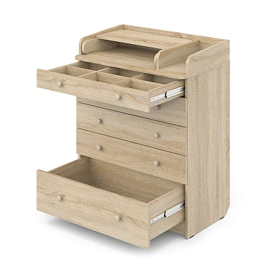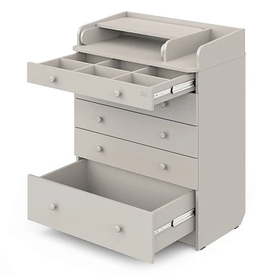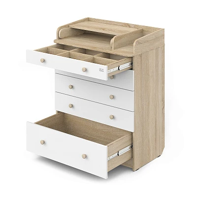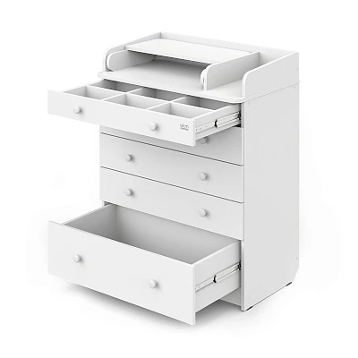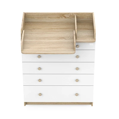 Комод "LEO" с органайзером - это идеальное решение для организации хранения детских вещей и создания уютного пространства в детской комнате. Этот комод выполнен из ЛДСП и оснащен пятью вместительными ящиками на шариковых направляющих. Органайзер для детских вещей и доска для пеленания делают его не только удобным, но и практичным выбором для родителей.