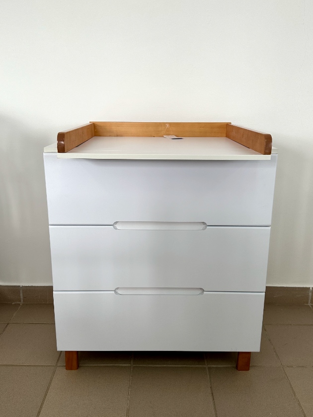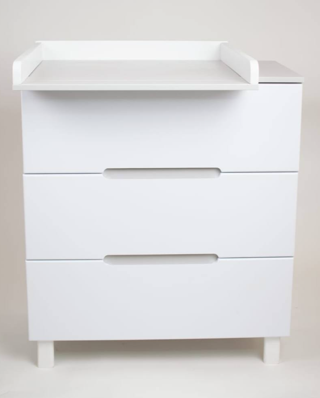 "VALORI" - стильный пеленальный комод, гармонично вписывающийся в любой интерьер благодаря своему минималистичному скандинавскому дизайну. Три удобных ящика без ручек обеспечивают просторное хранение детских вещиц. Особая конструкция позволяет установить бортик и превратить его в безопасную зону для ухода за малышом. Комод устойчиво располагается на ножках без колес – надежная поддержка материнской заботы!
