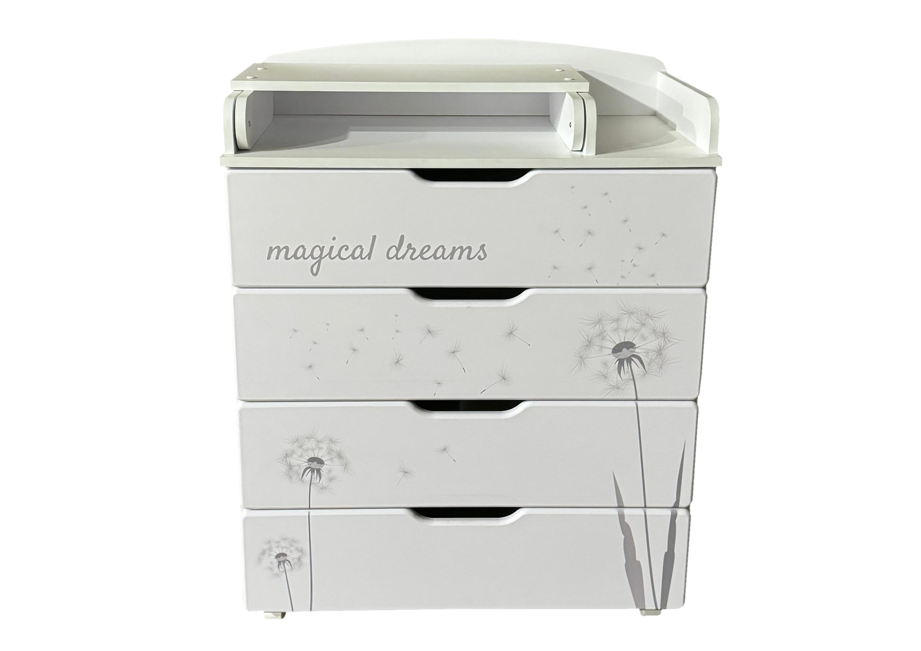 Откройте для себя идеальный помощник в уходе за младенцем — стильный и удобный пеленальный комод ALINA! Четыре удобных ящика на надежных шариковых направляющих, мобильность благодаря встроенным колесикам и просторный пеленальный столик делают эту модель настоящей находкой для родителей. Сделайте жизнь легче вместе с комодом ALINA – вашим верным спутником в родительстве!