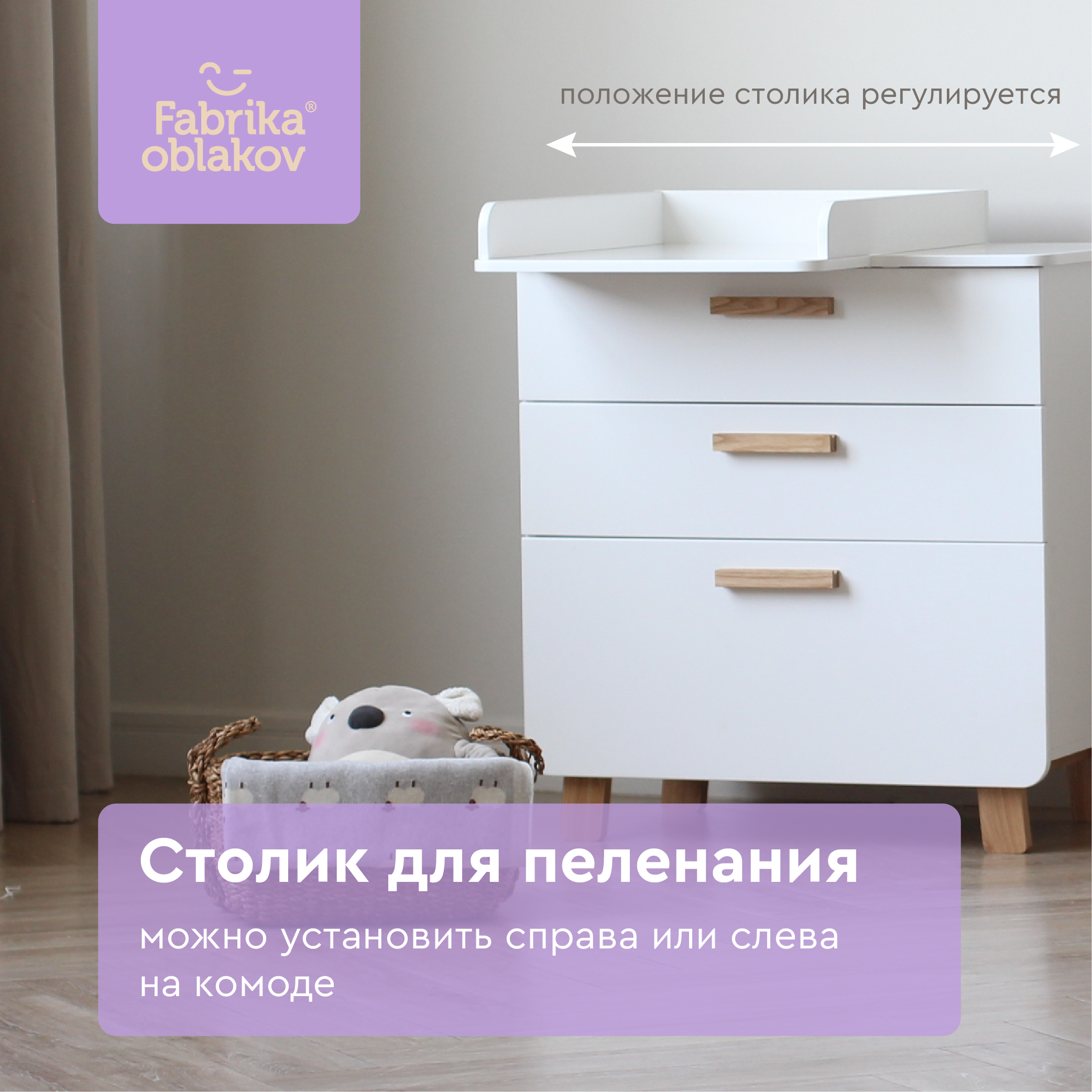 Привлекательный детский комод с пеленальной поверхностью из натурального ясеня – стильный акцент любой детской комнаты! Изготовлен из экологически чистых материалов (массив дерева и МДФ), обработанных безопасной белой краской и водно-дисперсным покрытием. Сочетается с мебелью аналогичной коллекции, обеспечивая гармонию пространства. Комод оснащен крепежом для фиксации к стенке, все его грани тщательно отполированы ради безопасности вашего ребенка.