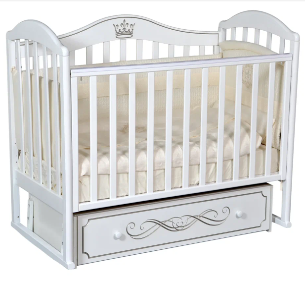 Кроватка Emily 2 - ваш экологичный выбор для безопасного детского сна! Удобное ограждение регулируется по высоте, обеспечивая идеальную защиту малыша. Универсальный маятниковое устройство дает возможность выбрать направление качания (продольное/поперечное), создавая комфортные условия для отдыха. Благодаря ящику на плавных шариковых направляющих храните детские вещички без риска попадания пыли. Идеально функционально и стильно!