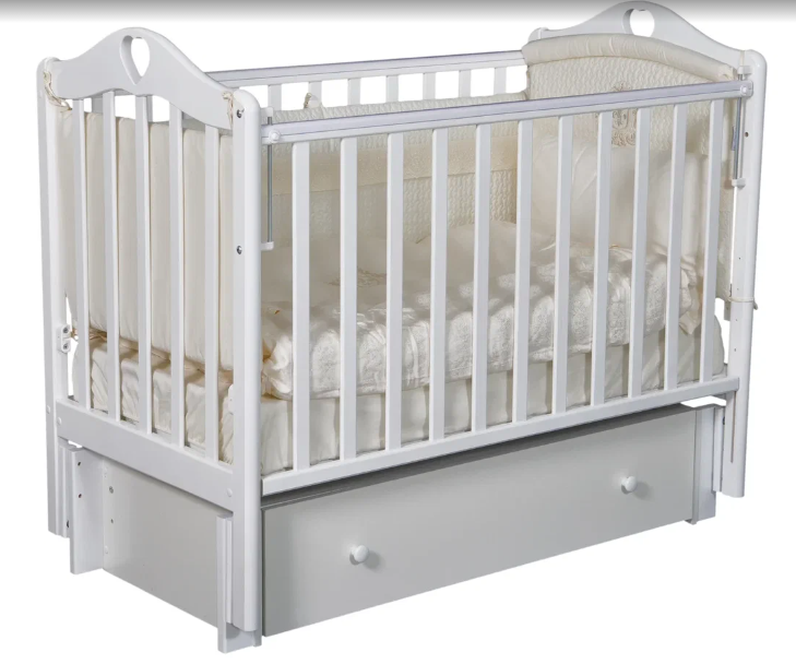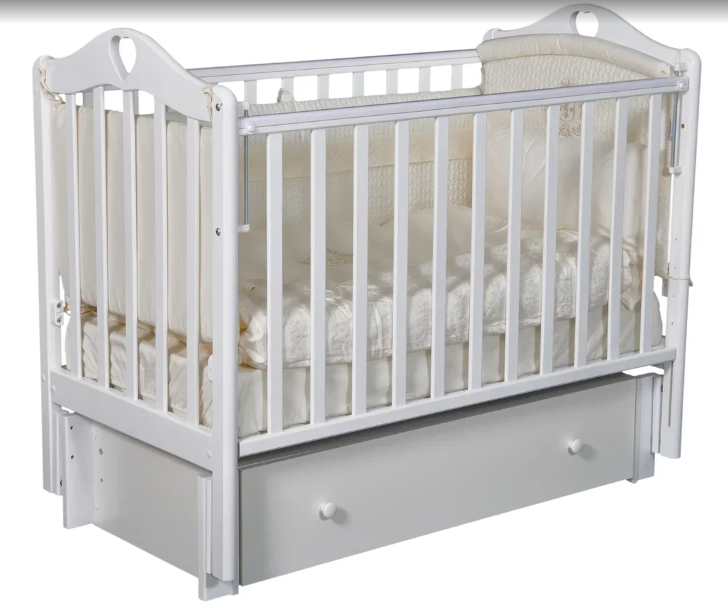 Кроватка KAROLINA 4/6 - уют и безопасность для малыша! Изготовлена исключительно из экологичных, гипоаллергенных материалов. Подвижное ограждение легко фиксируется в двух положениях по высоте. Универсальный маятник обеспечивает выбор направления качания (продольное или поперечное). Яркий акцент - удобный ящик на плавных шариковых направляющих, надежно защищенный от пыли. Идеальное место для хранения детских вещичек!