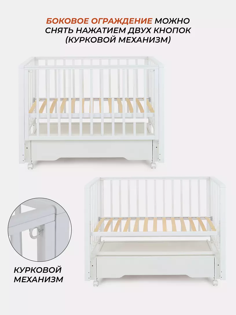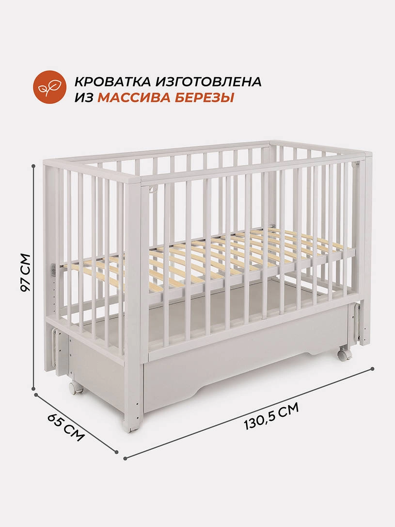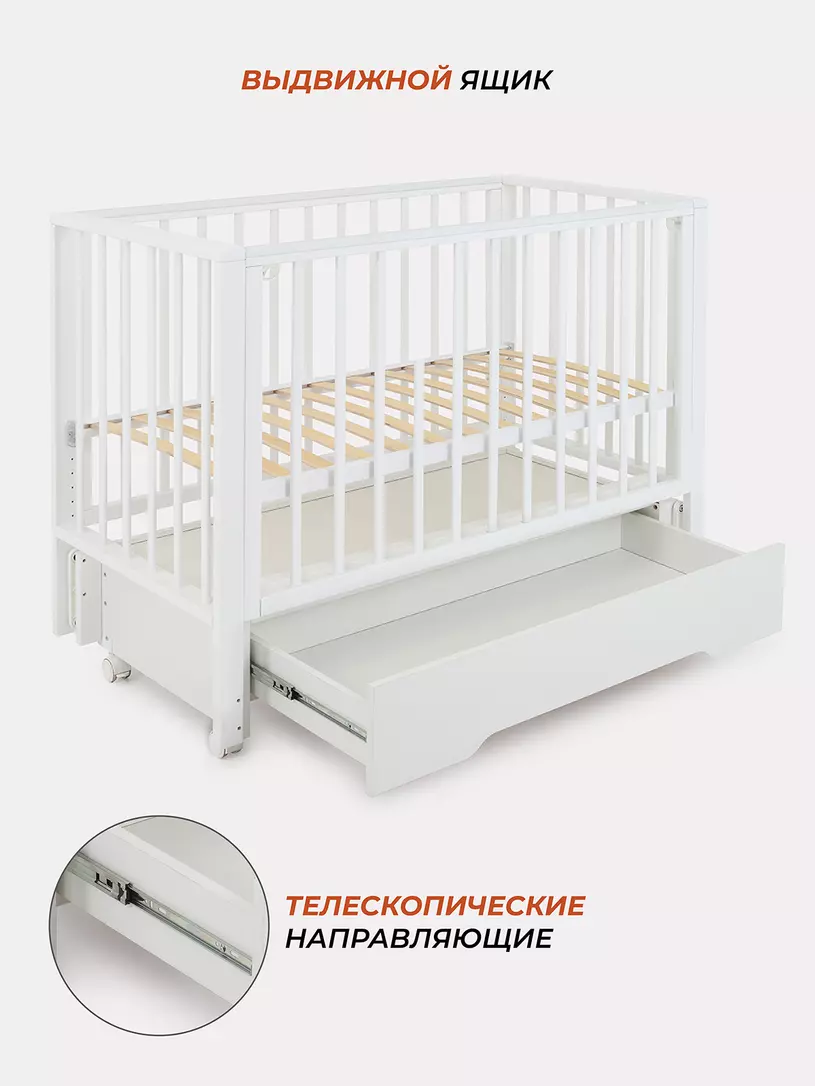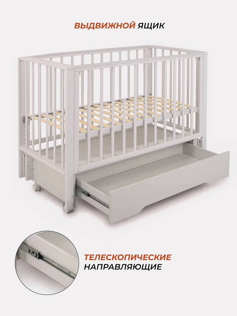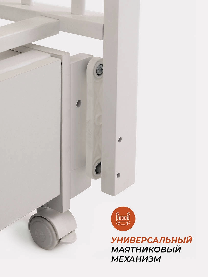 Комплектация: кровать, маятниковый механизм, ящик, колесики.