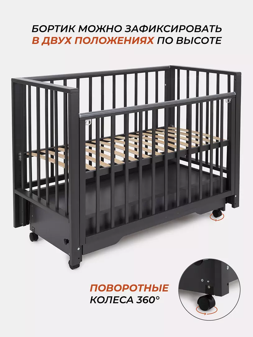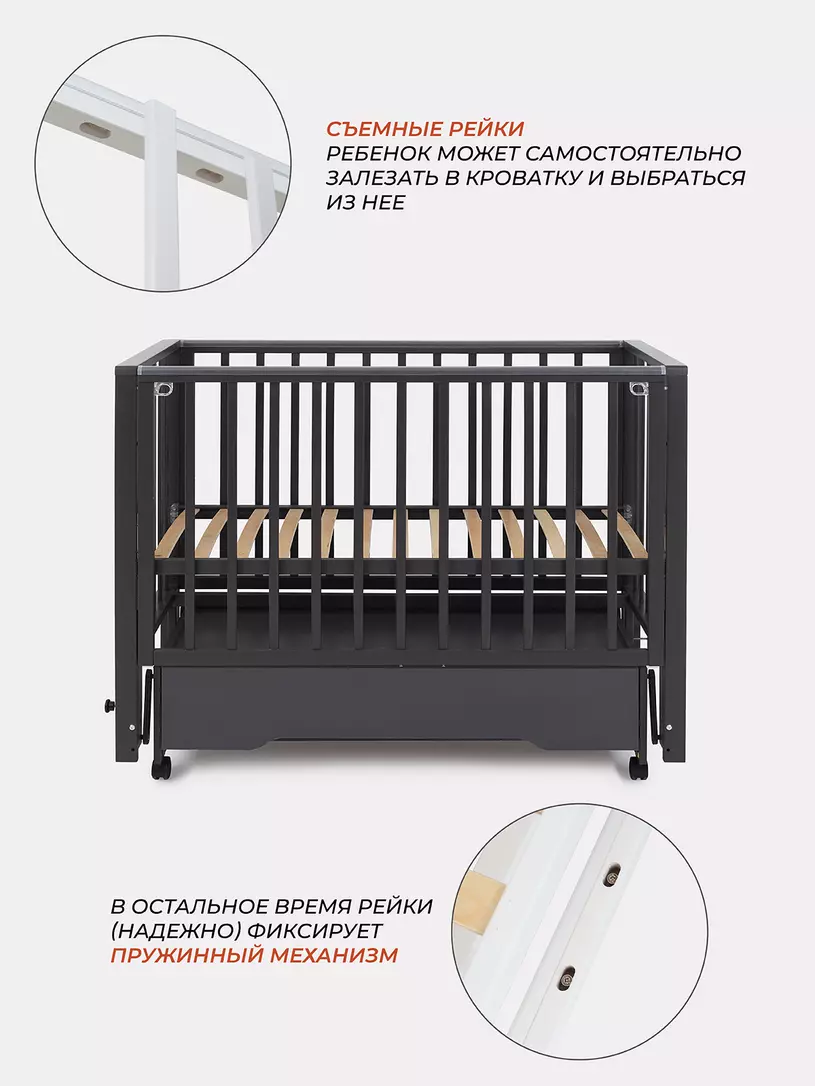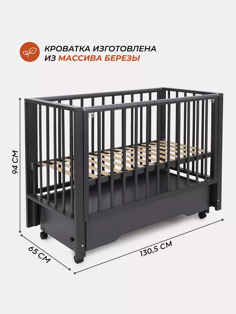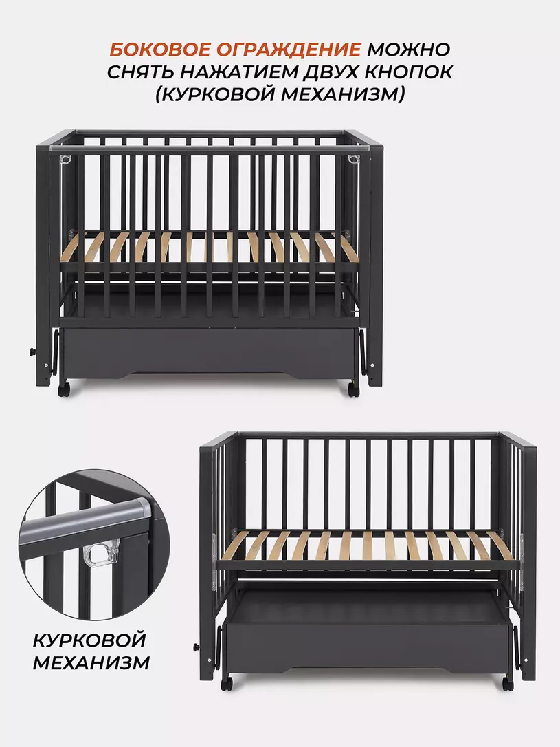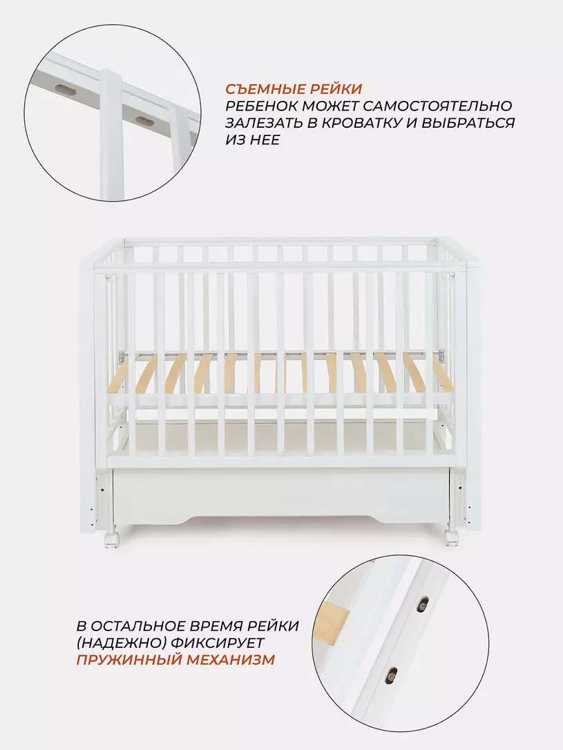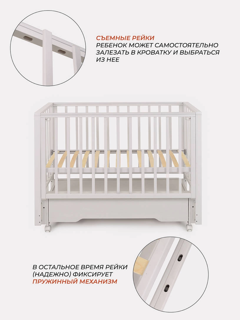Комплектация: кровать, маятниковый механизм, ящик, колесики.