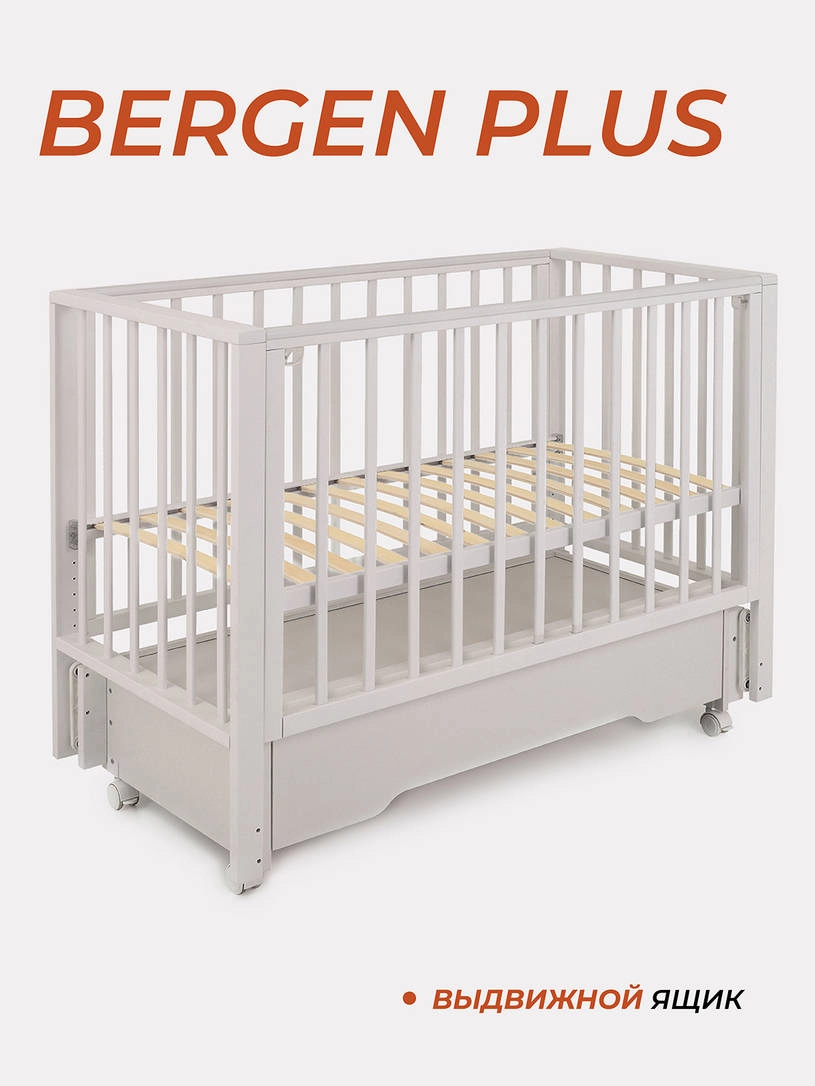 Кроватка Bergen – стильный выбор для вашего малыша! В дизайне преобладает актуальный стиль софт-минимилизм. Простая форма гармонично сочетается с функциональностью: универсальный маятник, опускающаяся боковая панель, пять положений матраса, вместительный ящик для белья и съемные рейки для самостоятельного лазания. Ваш ребёнок будет спать комфортно и спокойно!