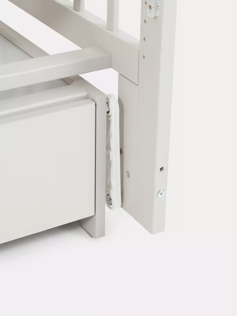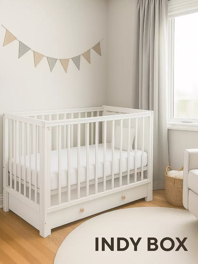 Детская кровать Indy Box – стильное решение в духе скандинавского минимализма! Компактная конструкция включает регулируемый маятниковый механизм, опускающуюся боковую панель, семь положений спального места, вместительный ящик для хранения постельных принадлежностей и съёмную ограждающую секцию. Ваш малыш будет спать спокойно и комфортно!