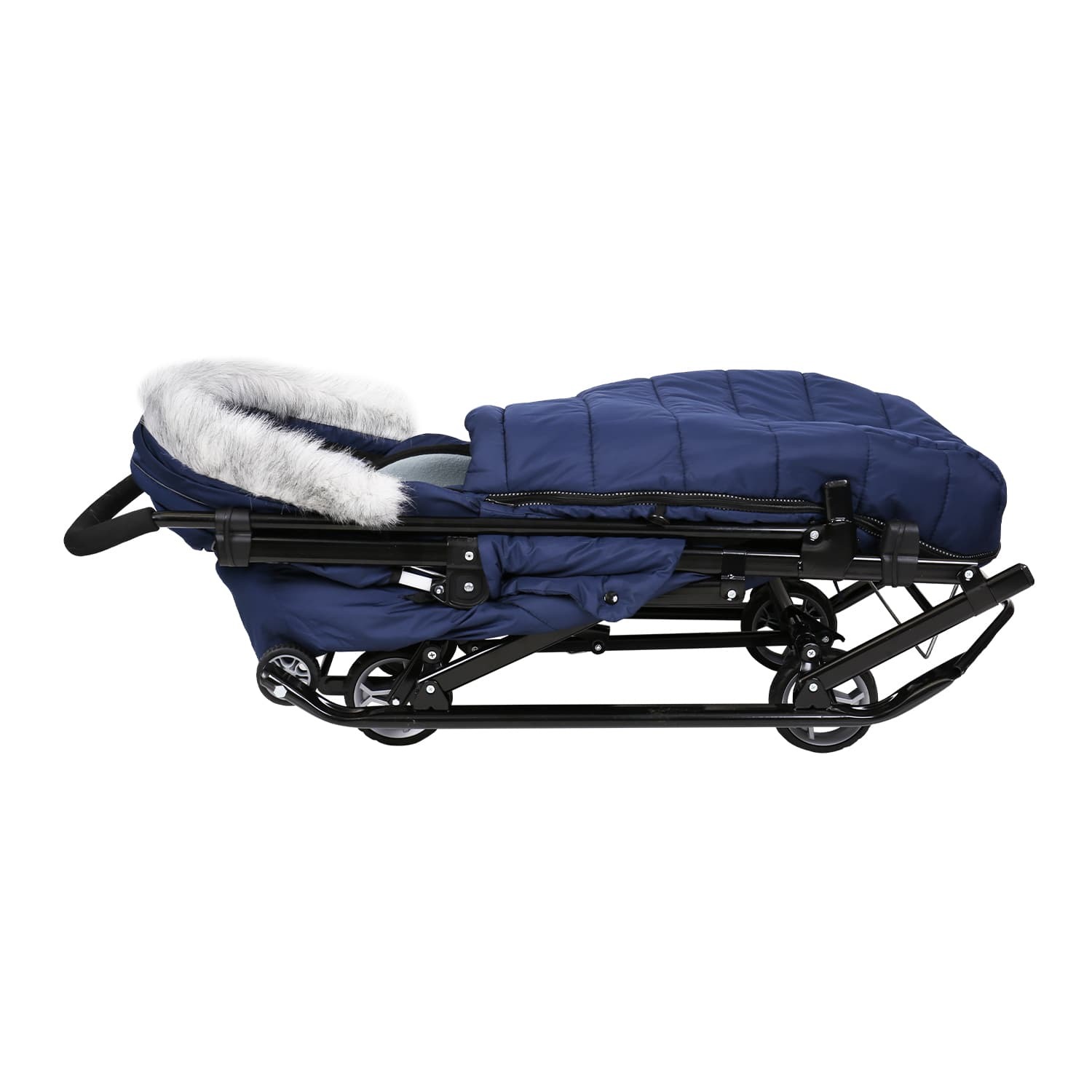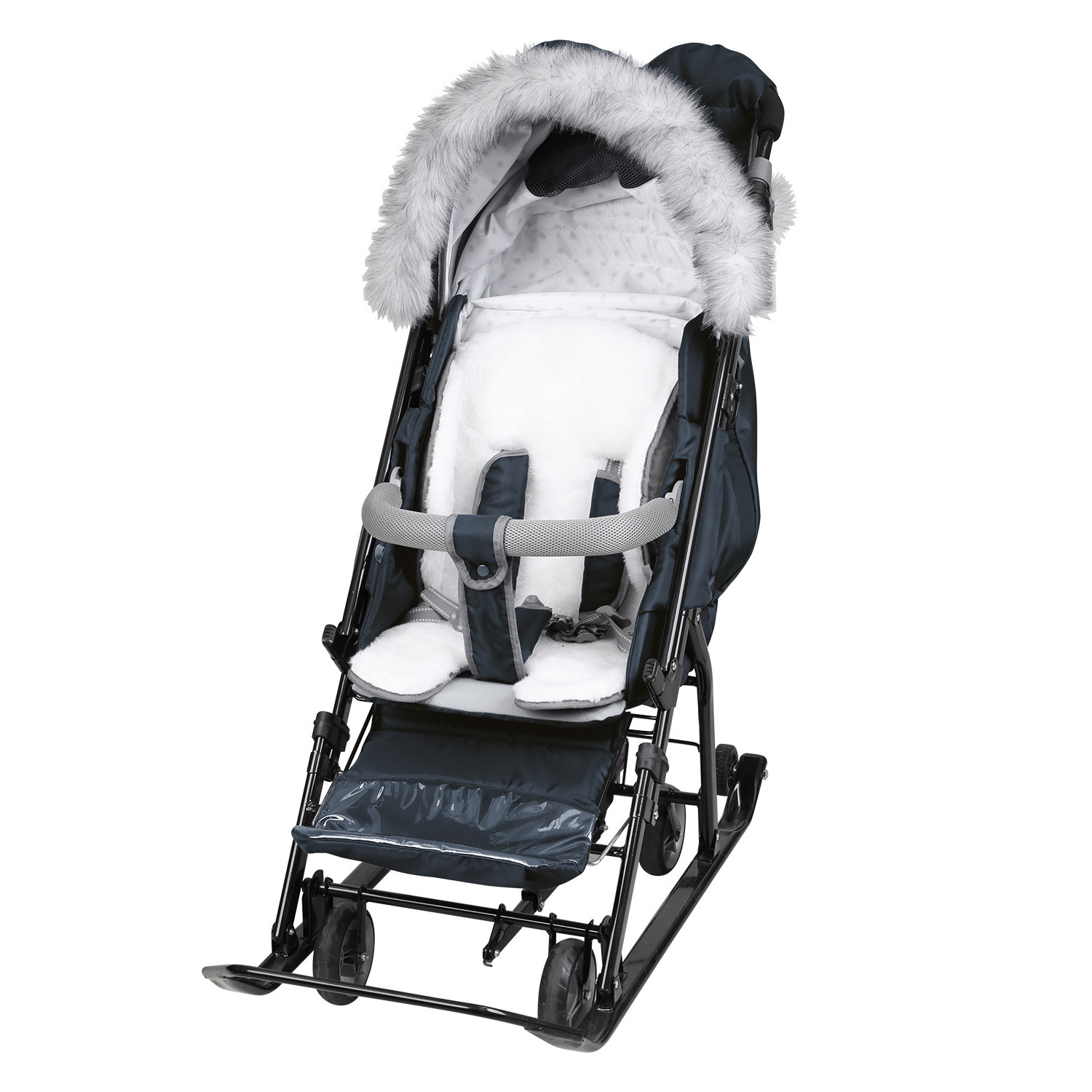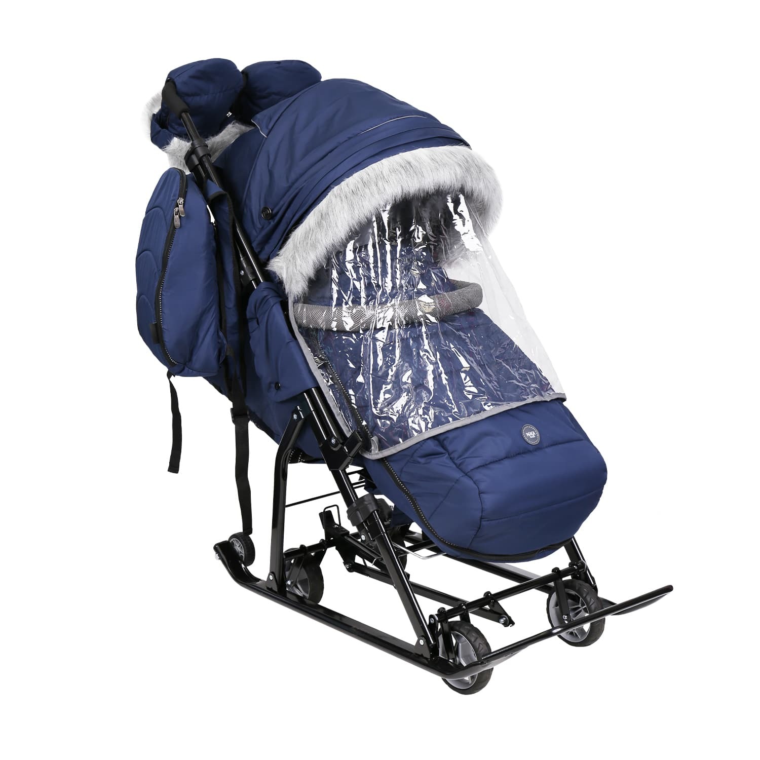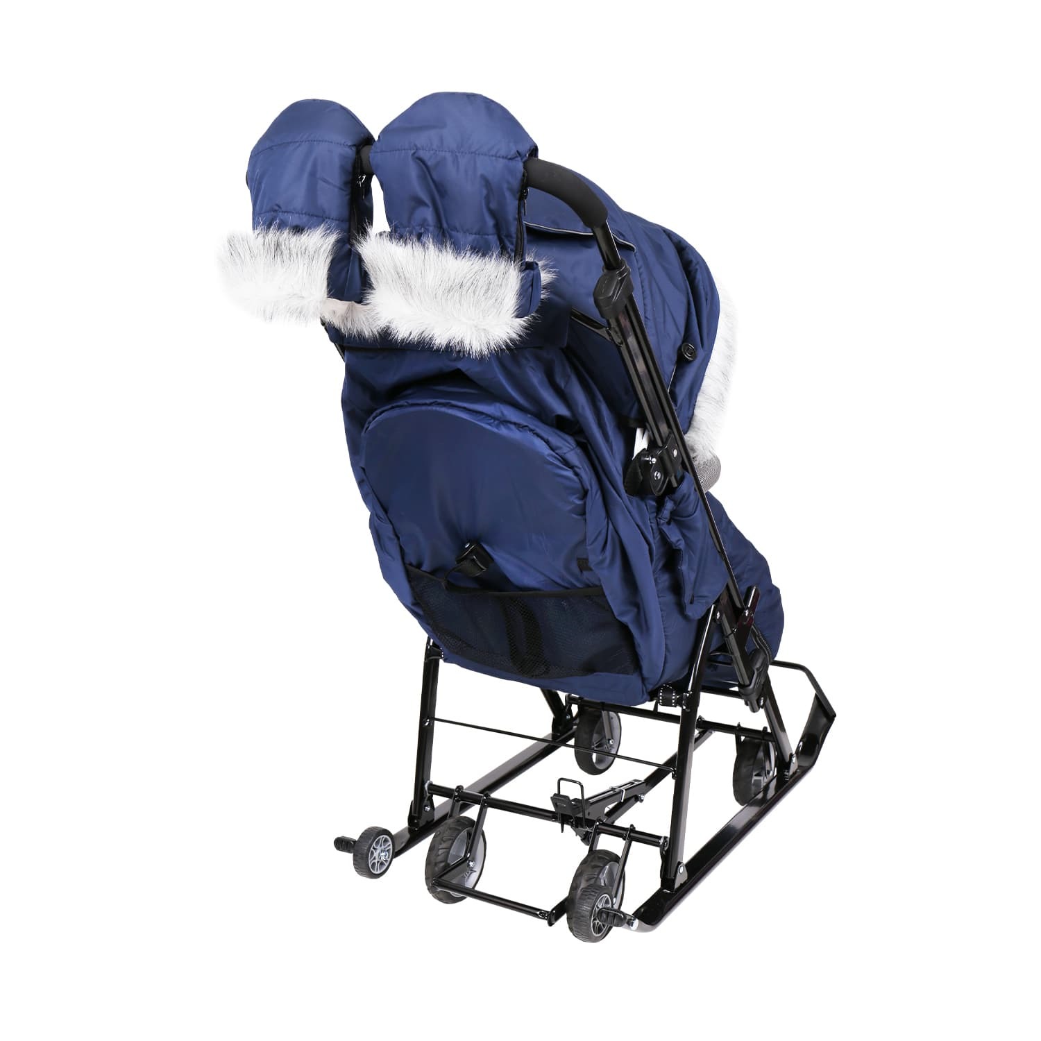 Широкие устойчивые полозья и выдвижные колеса обеспечат максимальную проходимость по асфальту и высоким рыхлым сугробам.